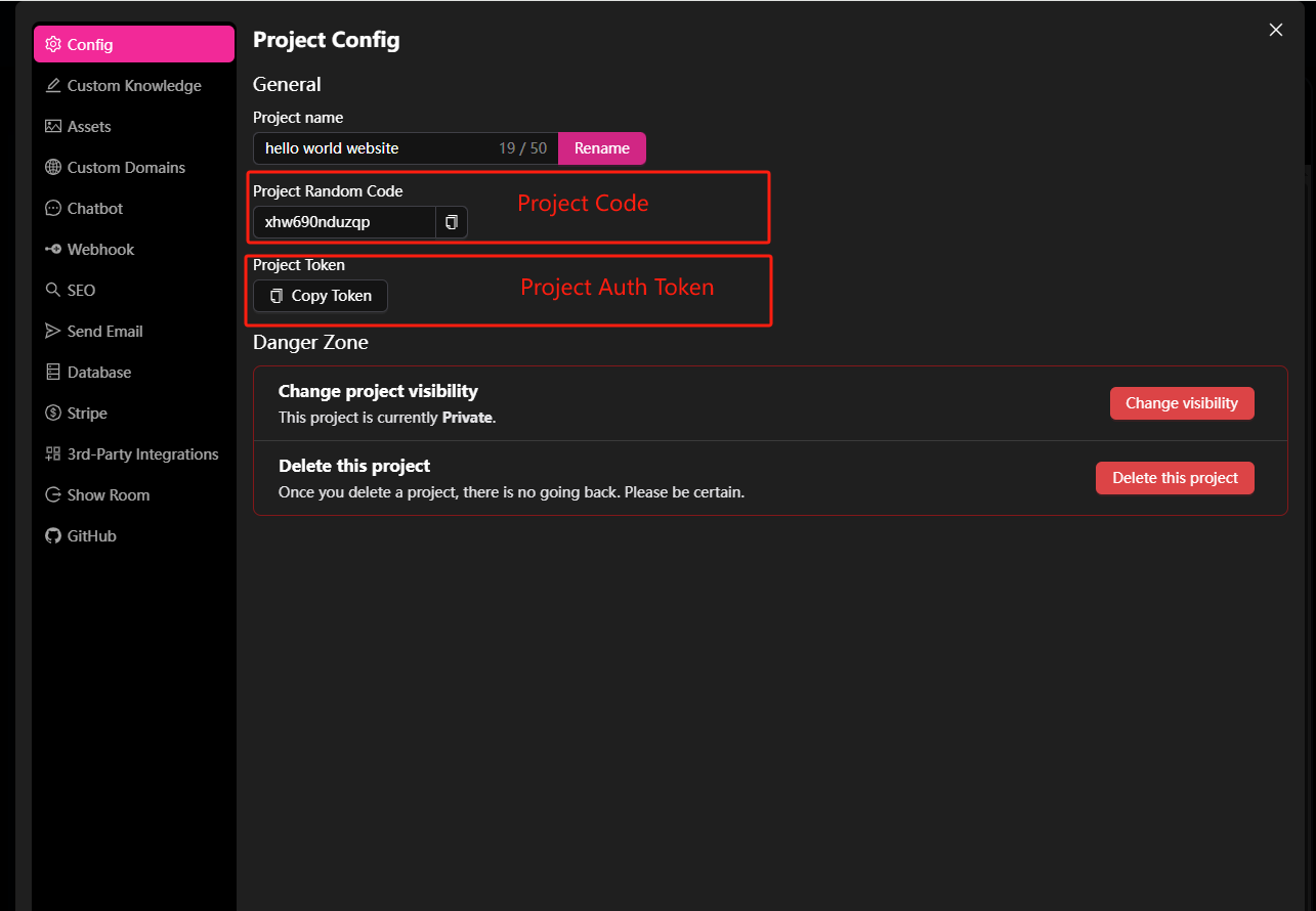 APIproject-data-managermentGet API authentication informationOn this pageGet API authentication information Get API authentication related information Find the "Settings" button in the project. Find the "Configuration" card in "Settings" Find "Authentication Information" and "Project Code" Copy the following information for use in subsequent steps