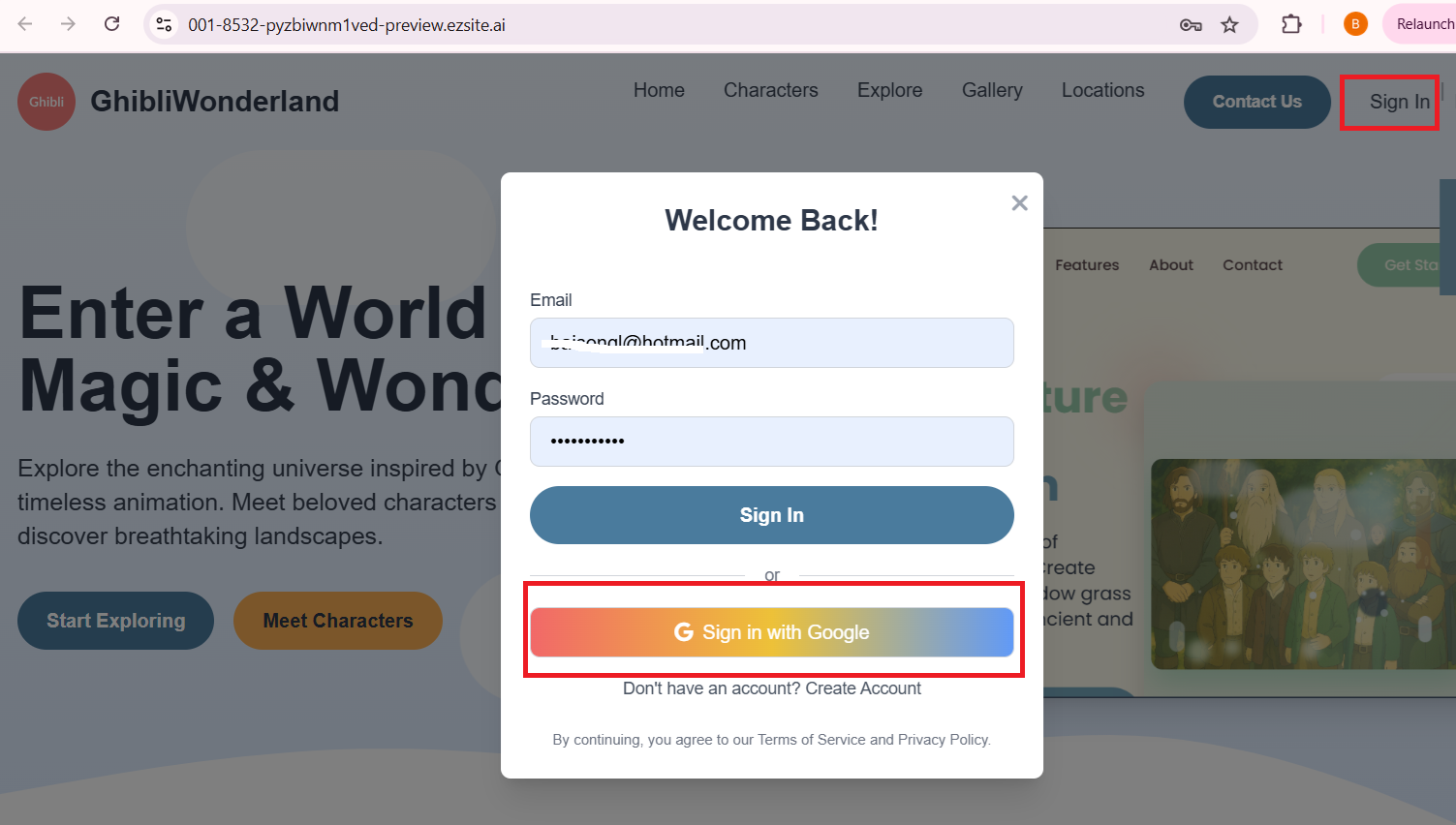 Click the Sign In button, then in the popup window that appears, select Sign In With Google.