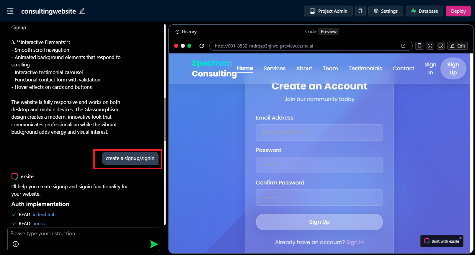 A signup/signin button will be implemented. When the user clicks the button, a signup/signin form will appear, prompting them to enter their email and password. For account activation during signup, a verification link will be sent to the provided email address.
