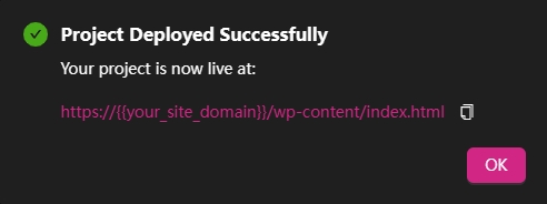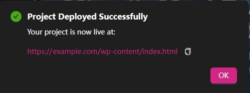 After Click "Deploy Now" Button, a "Project deployed successfully" message shows up