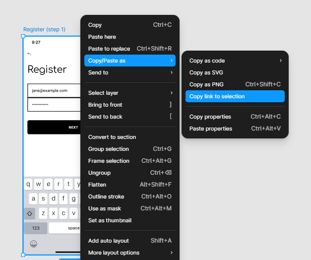 Select Copy/Paste as → Copy link to selection.