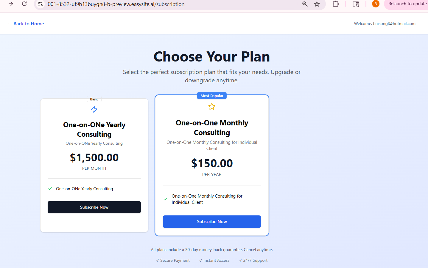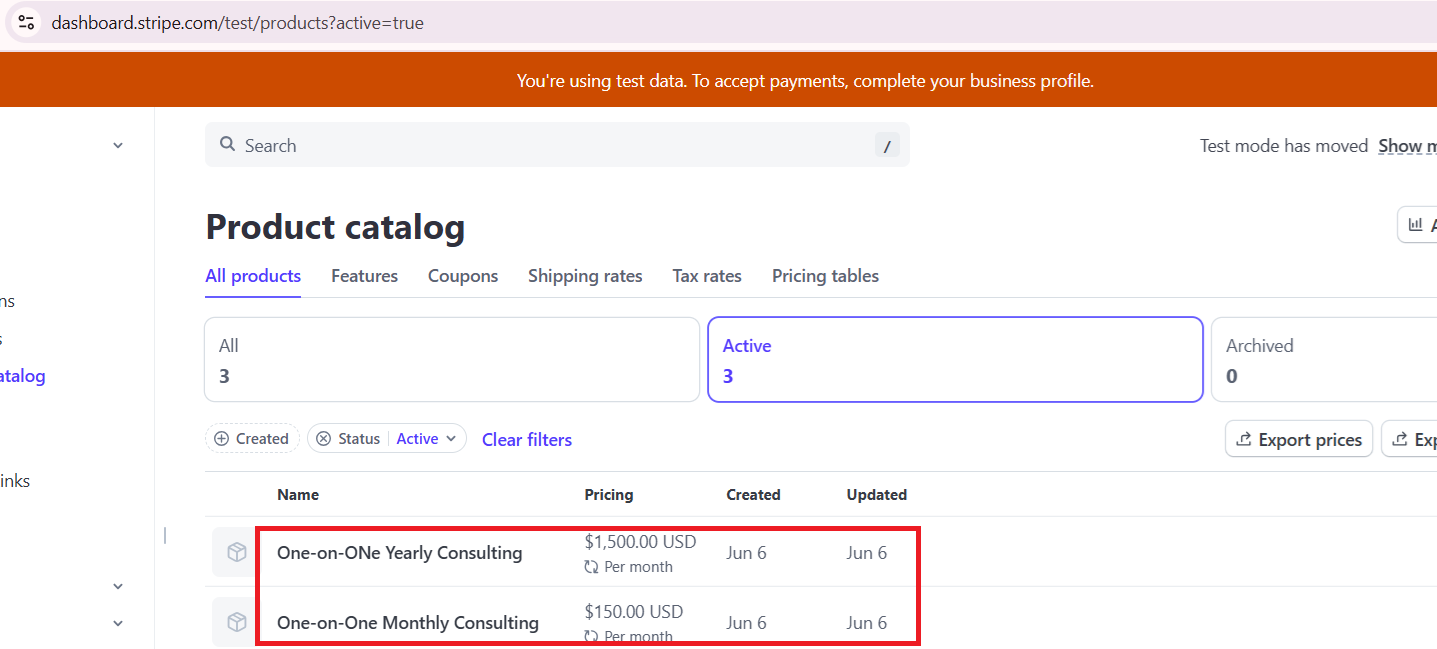 EZsitewill automatically add subscription products to your Stripe Account product pages. -