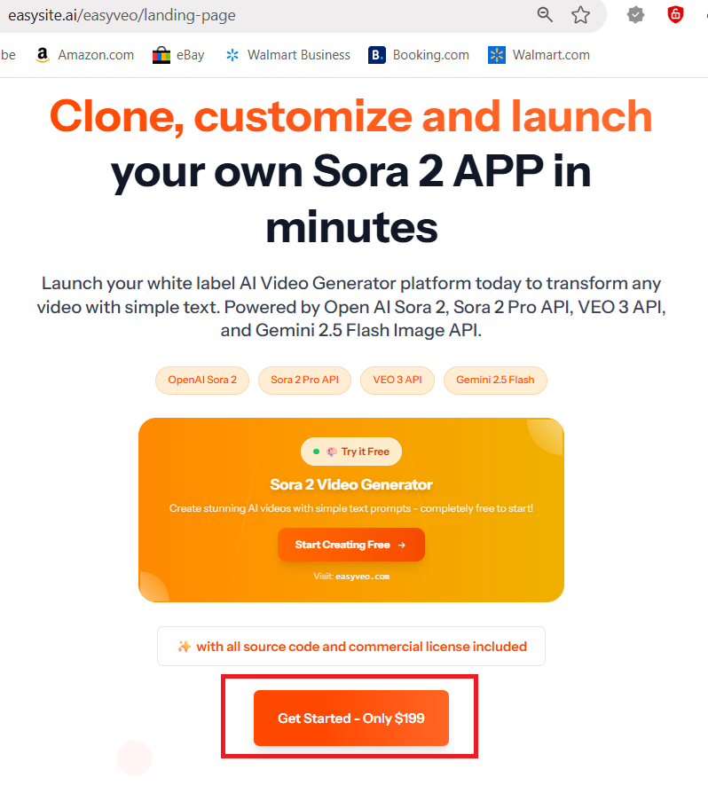 On the newly opened webpage, click the "Get Started - Only $199" button.