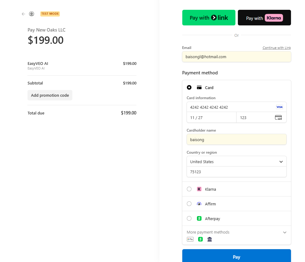 It will redirect you to the payment page. Enter the required card details and click the "Pay" button.