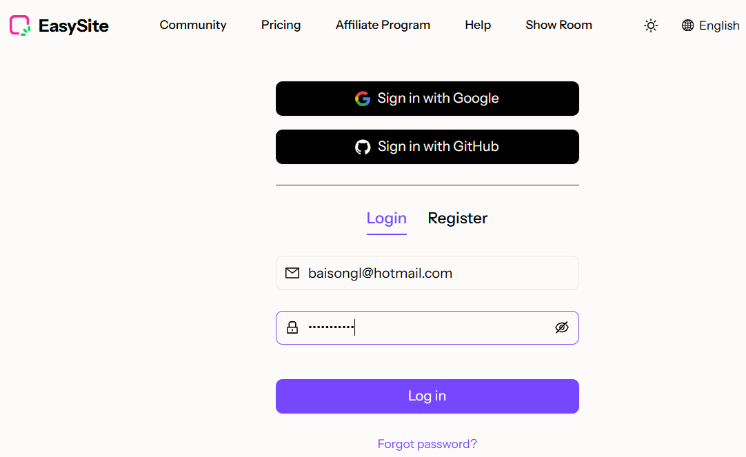 After logging in to your EZsite account, you will find "EasyVeo" listed in the project area on the left panel.